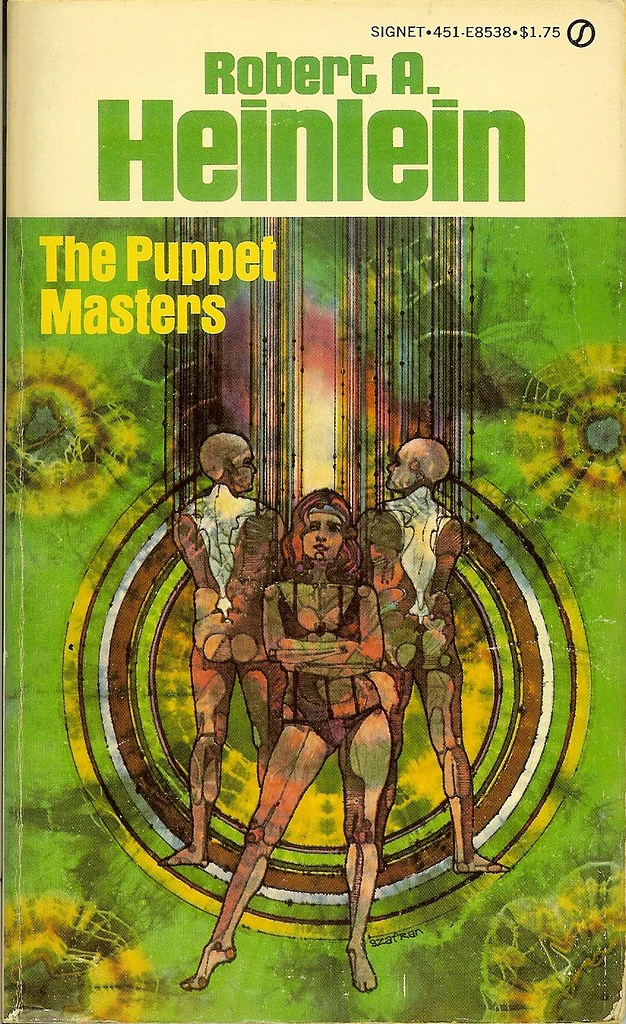 The Puppet Masters is Robert Heinlein's 1951 contribution to McCarthyite paranoia and the UFO craze. The novel features American secret agents fighting parasitic invaders from outer space. It was originally serialized in Galaxy Science Fiction (September, October, November 1951).